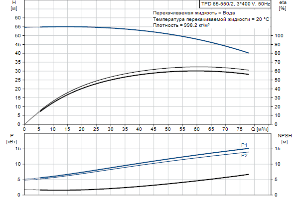 Одноступенчатый, без соединительной муфты, центробежный с всасывающим и выпускным патрубками на одной линии. Сдвоенный насос спроектирован с двумя параллельными головными частями. Насос имеет конструкцию извлечения сверху, т.е. головную часть (электродвигатель, голову насоса и рабочее колесо) можно демонтировать для обслуживания или ремонта в то время, как корпус насоса остается на трубопроводе.