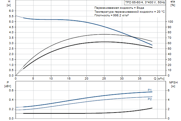 Одноступенчатый, без соединительной муфты, центробежный с всасывающим и выпускным патрубками на одной линии. Сдвоенный насос спроектирован с двумя параллельными головными частями. Насос имеет конструкцию извлечения сверху, т.е. головную часть (электродвигатель, голову насоса и рабочее колесо) можно демонтировать для обслуживания или ремонта в то время, как корпус насоса остается на трубопроводе.