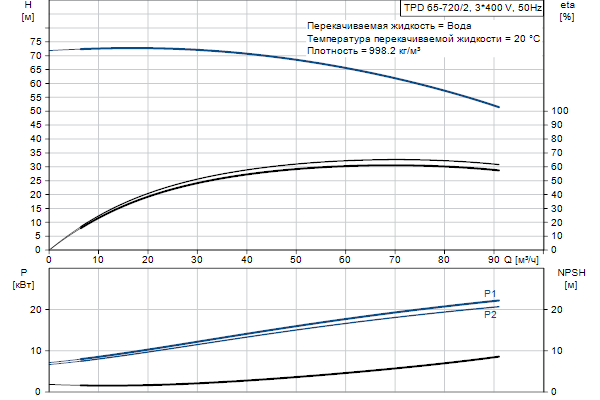 Одноступенчатый, без соединительной муфты, центробежный с всасывающим и выпускным патрубками на одной линии. Сдвоенный насос спроектирован с двумя параллельными головными частями. Насос имеет конструкцию извлечения сверху, т.е. головную часть (электродвигатель, голову насоса и рабочее колесо) можно демонтировать для обслуживания или ремонта в то время, как корпус насоса остается на трубопроводе.