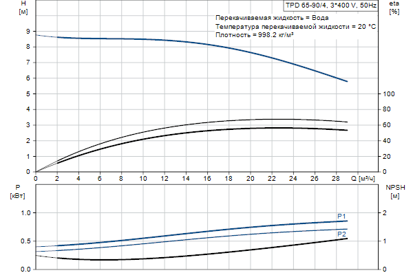 Одноступенчатый, без соединительной муфты, центробежный с всасывающим и выпускным патрубками на одной линии. Сдвоенный насос спроектирован с двумя параллельными головными частями. Насос имеет конструкцию извлечения сверху, т.е. головную часть (электродвигатель, голову насоса и рабочее колесо) можно демонтировать для обслуживания или ремонта в то время, как корпус насоса остается на трубопроводе.