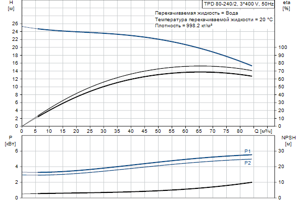 Одноступенчатый, без соединительной муфты, центробежный с всасывающим и выпускным патрубками на одной линии. Сдвоенный насос спроектирован с двумя параллельными головными частями. Насос имеет конструкцию извлечения сверху, т.е. головную часть (электродвигатель, голову насоса и рабочее колесо) можно демонтировать для обслуживания или ремонта в то время, как корпус насоса остается на трубопроводе.