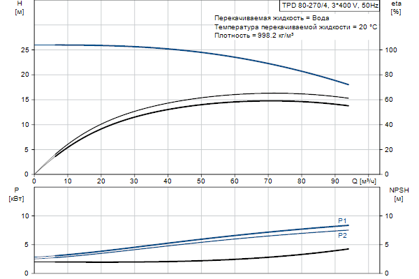 Одноступенчатый, без соединительной муфты, центробежный с всасывающим и выпускным патрубками на одной линии. Сдвоенный насос спроектирован с двумя параллельными головными частями. Насос имеет конструкцию извлечения сверху, т.е. головную часть (электродвигатель, голову насоса и рабочее колесо) можно демонтировать для обслуживания или ремонта в то время, как корпус насоса остается на трубопроводе.