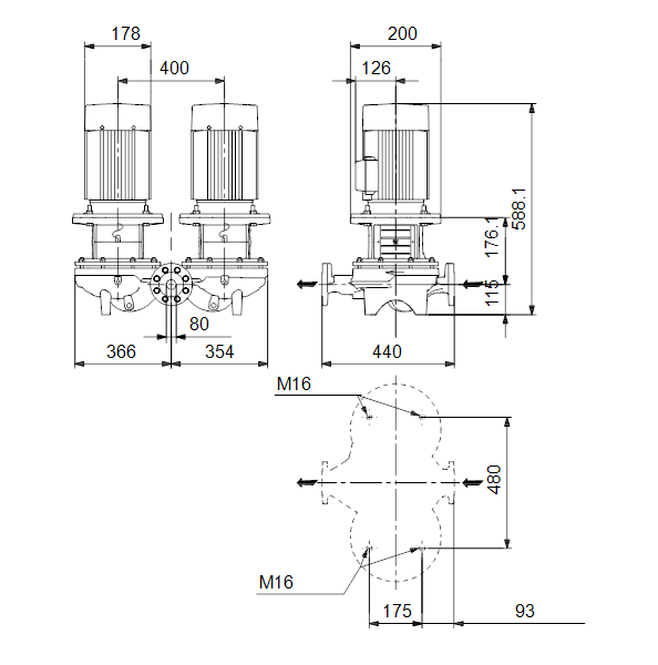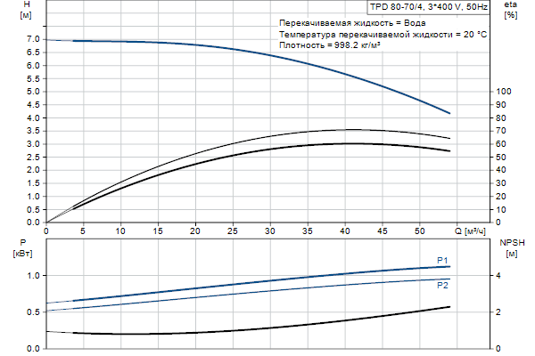 Одноступенчатый, без соединительной муфты, центробежный с всасывающим и выпускным патрубками на одной линии. Сдвоенный насос спроектирован с двумя параллельными головными частями. Насос имеет конструкцию извлечения сверху, т.е. головную часть (электродвигатель, голову насоса и рабочее колесо) можно демонтировать для обслуживания или ремонта в то время, как корпус насоса остается на трубопроводе.
