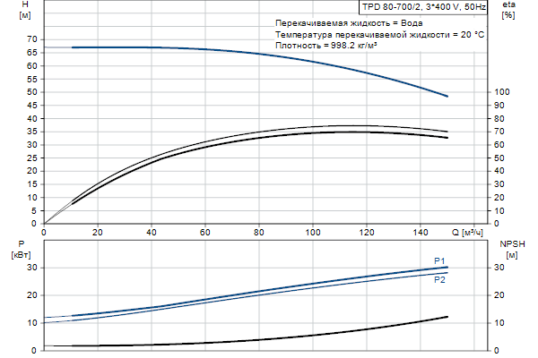 Одноступенчатый, без соединительной муфты, центробежный с всасывающим и выпускным патрубками на одной линии. Сдвоенный насос спроектирован с двумя параллельными головными частями. Насос имеет конструкцию извлечения сверху, т.е. головную часть (электродвигатель, голову насоса и рабочее колесо) можно демонтировать для обслуживания или ремонта в то время, как корпус насоса остается на трубопроводе.
