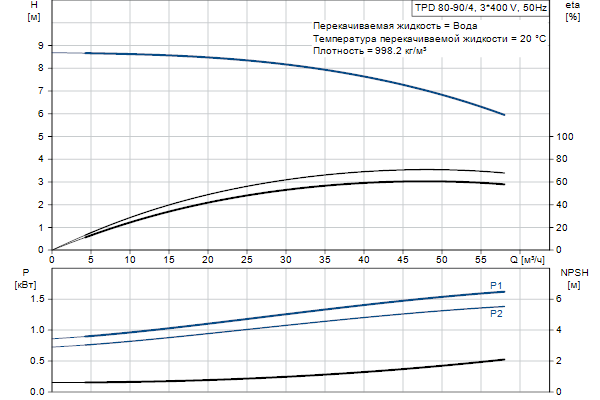 Одноступенчатый, без соединительной муфты, центробежный с всасывающим и выпускным патрубками на одной линии. Сдвоенный насос спроектирован с двумя параллельными головными частями. Насос имеет конструкцию извлечения сверху, т.е. головную часть (электродвигатель, голову насоса и рабочее колесо) можно демонтировать для обслуживания или ремонта в то время, как корпус насоса остается на трубопроводе.