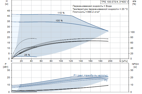 Электродвигатель включает частотный преобразователь и ПИ-регулятор в клеммной коробке. Это обеспечивает постоянное плавное регулирование частоты вращения электродвигателя, а также возможность корректировки рабочих характеристик в соответствии с заданными требованиями. Насос оснащён датчиком перепада давления.