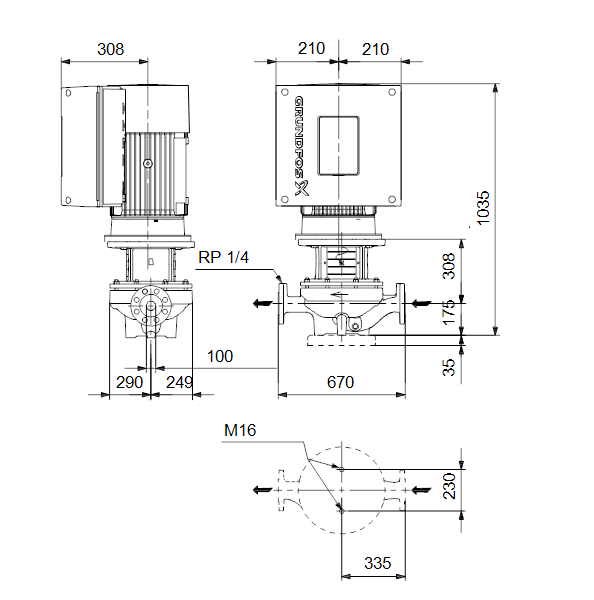 Одноступенчатый, без соединительной муфты, центробежный с всасывающим и выпускным патрубками на одной линии. Насос имеет конструкцию извлечения сверху, т.е. головную часть (электродвигатель, голову насоса и рабочее колесо) можно демонтировать для обслуживания или ремонта в то время, как корпус насоса остается на трубопроводе.