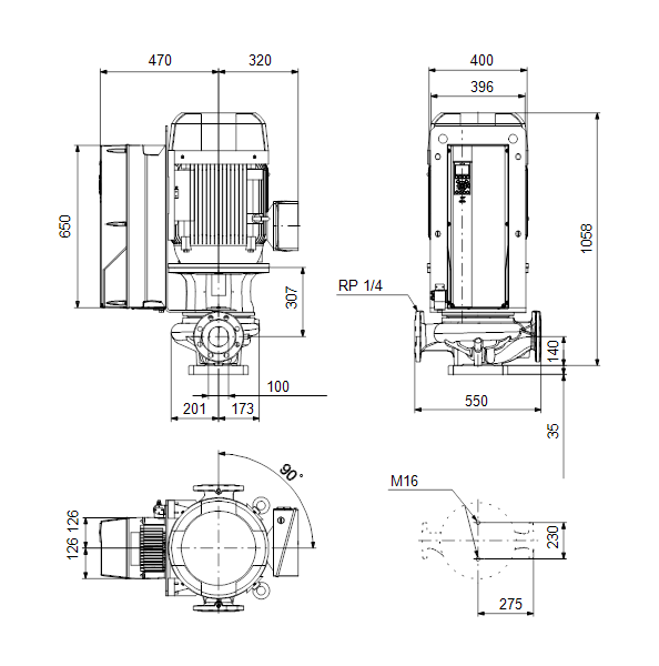 Насос оснащен несбалансированным сильфонным уплотнением. Уплотнения вала соответствуют EN 12756. Подсоединение к трубопроводу с помощью фланцев PN 16 DIN (EN 1092-2 и ISO 7005-2).