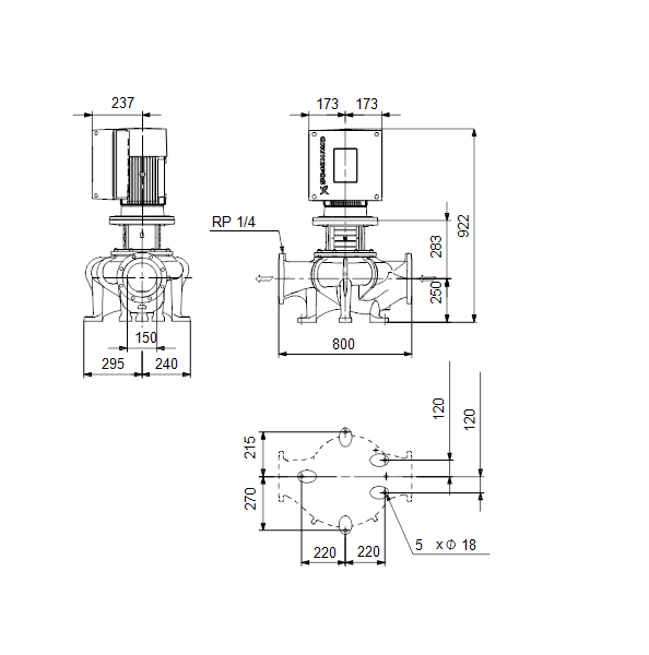 Одноступенчатый, без соединительной муфты, центробежный с всасывающим и выпускным патрубками на одной линии. Насос имеет конструкцию извлечения сверху, т.е. головную часть (электродвигатель, голову насоса и рабочее колесо) можно демонтировать для обслуживания или ремонта в то время, как корпус насоса остается на трубопроводе.