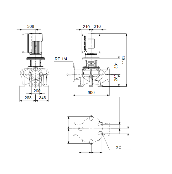 Одноступенчатый, без соединительной муфты, центробежный с всасывающим и выпускным патрубками на одной линии. Насос имеет конструкцию извлечения сверху, т.е. головную часть (электродвигатель, голову насоса и рабочее колесо) можно демонтировать для обслуживания или ремонта в то время, как корпус насоса остается на трубопроводе.