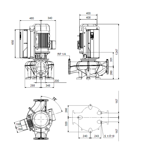 Одноступенчатый, без соединительной муфты, центробежный с всасывающим и выпускным патрубками на одной линии. Насос имеет конструкцию извлечения сверху, т.е. головную часть (электродвигатель, голову насоса и рабочее колесо) можно демонтировать для обслуживания или ремонта в то время, как корпус насоса остается на трубопроводе.