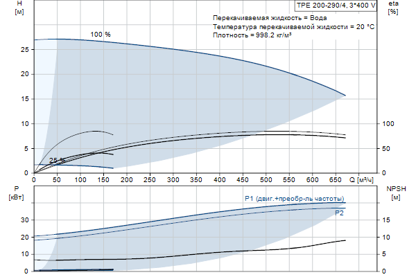 Одноступенчатый, без соединительной муфты, центробежный с всасывающим и выпускным патрубками на одной линии. Насос имеет конструкцию извлечения сверху, т.е. головную часть (электродвигатель, голову насоса и рабочее колесо) можно демонтировать для обслуживания или ремонта в то время, как корпус насоса остается на трубопроводе.