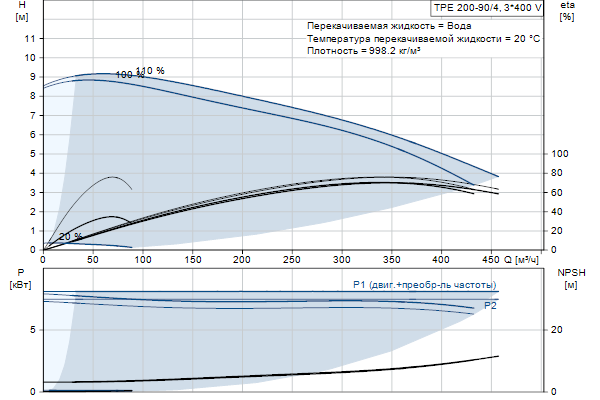 Электродвигатель включает частотный преобразователь и ПИ-регулятор в клеммной коробке. Это обеспечивает постоянное плавное регулирование частоты вращения электродвигателя, а также возможность корректировки рабочих характеристик в соответствии с заданными требованиями. Насос оснащён датчиком перепада давления.