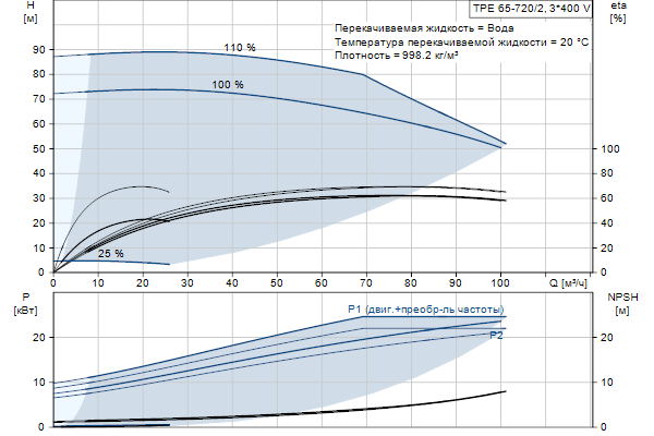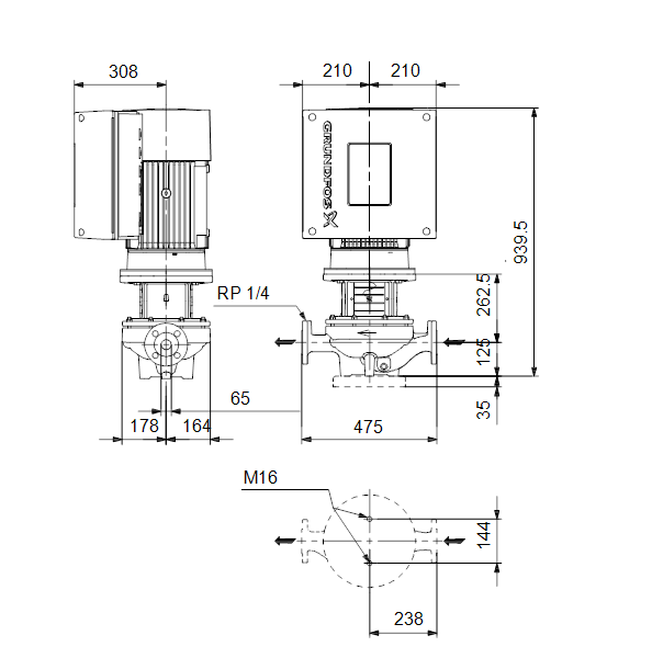 Одноступенчатый, без соединительной муфты, центробежный с всасывающим и выпускным патрубками на одной линии. Насос имеет конструкцию извлечения сверху, т.е. головную часть (электродвигатель, голову насоса и рабочее колесо) можно демонтировать для обслуживания или ремонта в то время, как корпус насоса остается на трубопроводе.