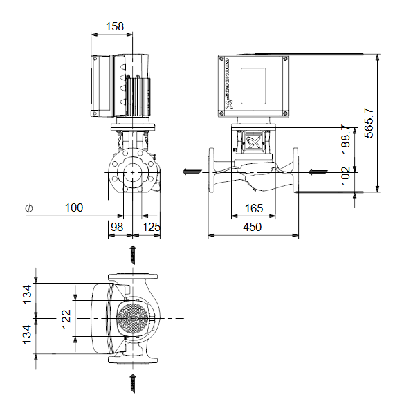 Одноступенчатый, без соединительной муфты, центробежный с всасывающим и выпускным патрубками на одной линии. Насос имеет конструкцию извлечения сверху, т.е. головную часть (электродвигатель, голову насоса и рабочее колесо) можно демонтировать для обслуживания или ремонта в то время, как корпус насоса остается на трубопроводе.