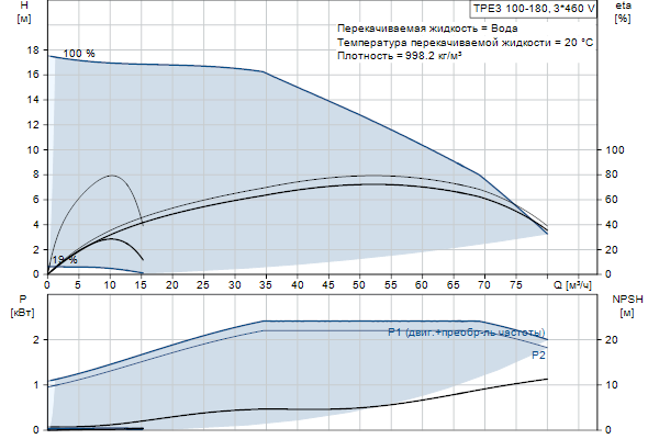 Электродвигатель включает частотный преобразователь и ПИ-регулятор в клеммной коробке. Это обеспечивает постоянное плавное регулирование частоты вращения электродвигателя, а также возможность корректировки рабочих характеристик в соответствии с заданными требованиями. Насос оснащён совмещённым датчиком температуры и перепада давления.