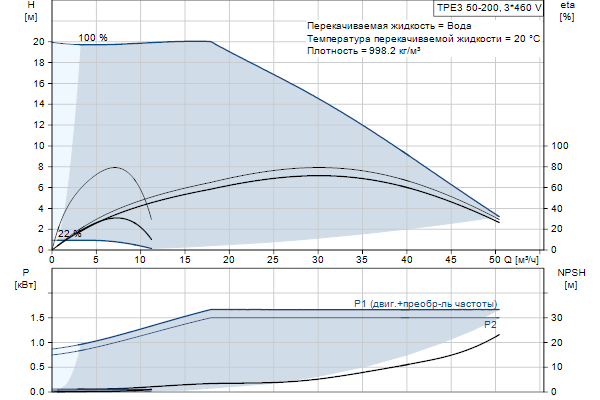 Электродвигатель включает частотный преобразователь и ПИ-регулятор в клеммной коробке. Это обеспечивает постоянное плавное регулирование частоты вращения электродвигателя, а также возможность корректировки рабочих характеристик в соответствии с заданными требованиями. Насос оснащён совмещённым датчиком температуры и перепада давления.