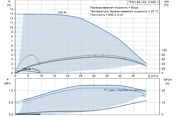 Электродвигатель включает частотный преобразователь и ПИ-регулятор в клеммной коробке. Это обеспечивает постоянное плавное регулирование частоты вращения электродвигателя, а также возможность корректировки рабочих характеристик в соответствии с заданными требованиями. Насос оснащён совмещённым датчиком температуры и перепада давления.