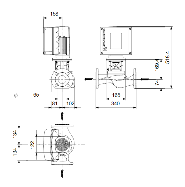 Одноступенчатый, без соединительной муфты, центробежный с всасывающим и выпускным патрубками на одной линии. Насос имеет конструкцию извлечения сверху, т.е. головную часть (электродвигатель, голову насоса и рабочее колесо) можно демонтировать для обслуживания или ремонта в то время, как корпус насоса остается на трубопроводе.