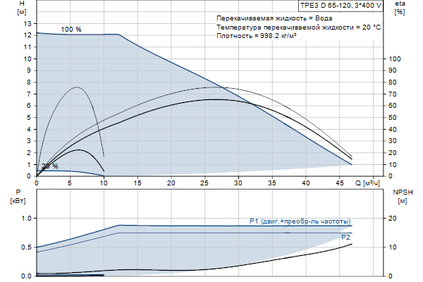 Электродвигатель включает частотный преобразователь и ПИ-регулятор в клеммной коробке. Это обеспечивает постоянное плавное регулирование частоты вращения электродвигателя, а также возможность корректировки рабочих характеристик в соответствии с заданными требованиями. Насос оснащён совмещённым датчиком температуры и перепада давления.