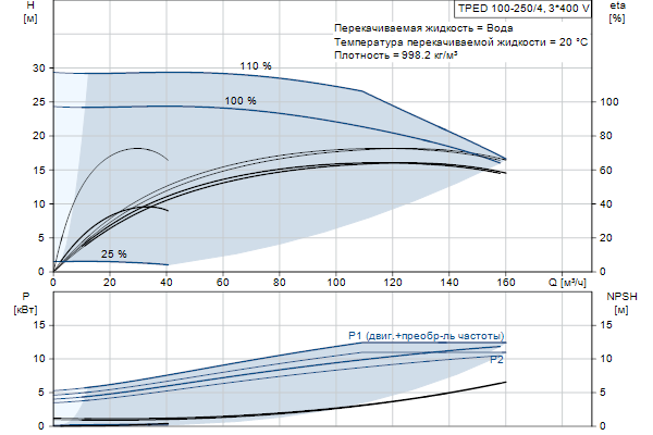 Электродвигатель включает частотный преобразователь и ПИ-регулятор в клеммной коробке. Это обеспечивает постоянное плавное регулирование частоты вращения электродвигателя, а также возможность корректировки рабочих характеристик в соответствии с заданными требованиями. Насос оснащён датчиком перепада давления.