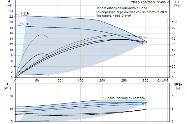 Электродвигатель включает частотный преобразователь и ПИ-регулятор в клеммной коробке. Это обеспечивает постоянное плавное регулирование частоты вращения электродвигателя, а также возможность корректировки рабочих характеристик в соответствии с заданными требованиями. Насос оснащён датчиком перепада давления.