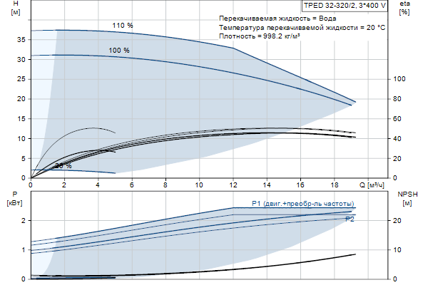 Электродвигатель включает частотный преобразователь и ПИ-регулятор в клеммной коробке. Это обеспечивает постоянное плавное регулирование частоты вращения электродвигателя, а также возможность корректировки рабочих характеристик в соответствии с заданными требованиями. Насос оснащён датчиком перепада давления.