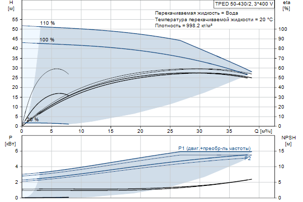 Электродвигатель включает частотный преобразователь и ПИ-регулятор в клеммной коробке. Это обеспечивает постоянное плавное регулирование частоты вращения электродвигателя, а также возможность корректировки рабочих характеристик в соответствии с заданными требованиями. Насос оснащён датчиком перепада давления.