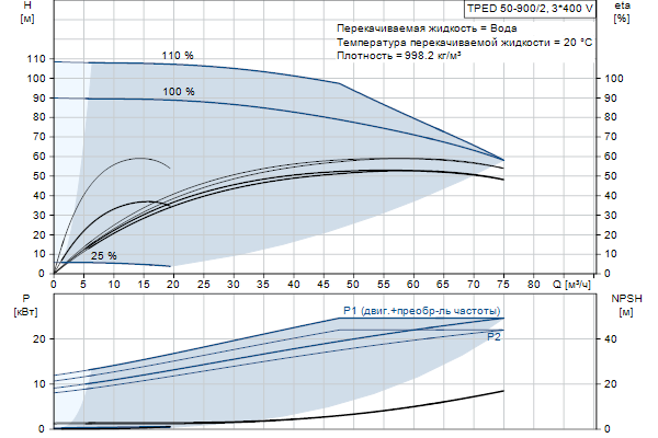 Электродвигатель включает частотный преобразователь и ПИ-регулятор в клеммной коробке. Это обеспечивает постоянное плавное регулирование частоты вращения электродвигателя, а также возможность корректировки рабочих характеристик в соответствии с заданными требованиями. Насос оснащён датчиком перепада давления.
