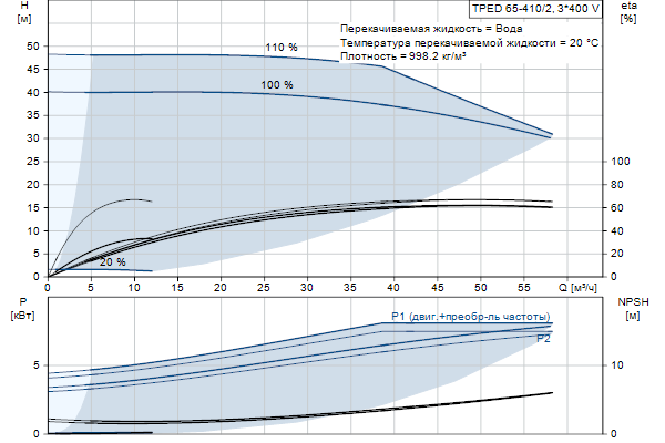 Электродвигатель включает частотный преобразователь и ПИ-регулятор в клеммной коробке. Это обеспечивает постоянное плавное регулирование частоты вращения электродвигателя, а также возможность корректировки рабочих характеристик в соответствии с заданными требованиями. Насос оснащён датчиком перепада давления.