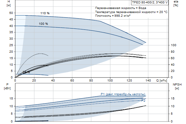 Электродвигатель включает частотный преобразователь и ПИ-регулятор в клеммной коробке. Это обеспечивает постоянное плавное регулирование частоты вращения электродвигателя, а также возможность корректировки рабочих характеристик в соответствии с заданными требованиями. Насос оснащён датчиком перепада давления.