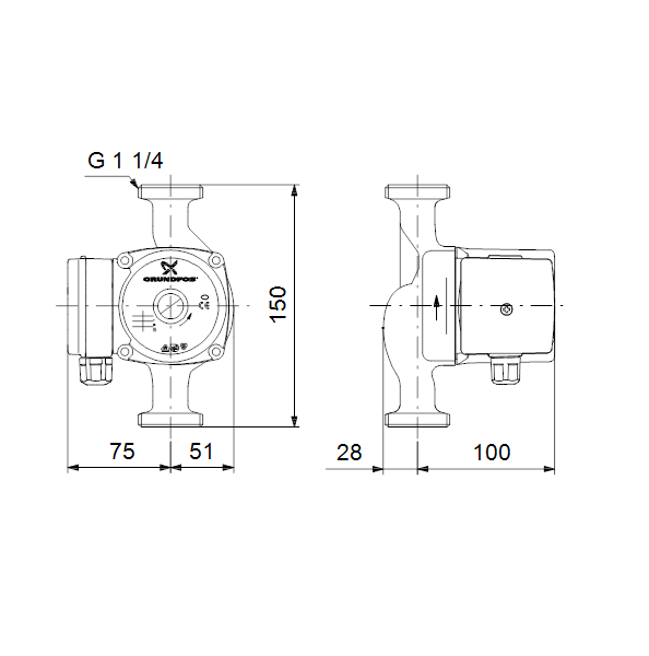 Циркуляционный насос Grundfos UP 20-30 N K 150