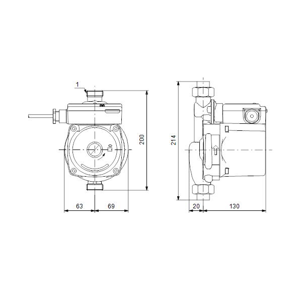 Монтажная длина 1.: Этот насос имеет входной и выходной порт 1. Номинальное давление насоса соответствует PN 10 и длине от порта до порта 200 мм.