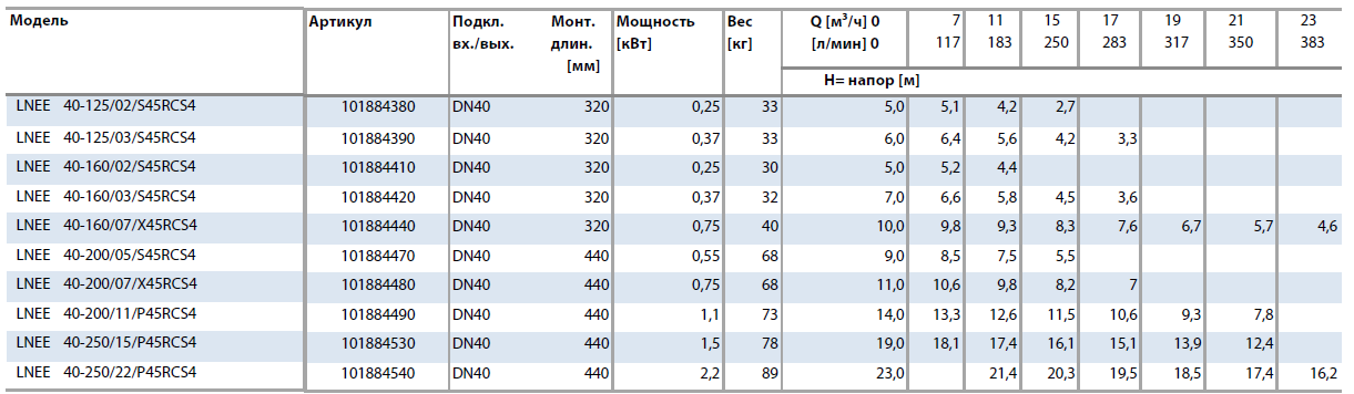 Современная конструкция и гидравлические характеристики, оптимизированные для использования совместно с преобразователем частоты, делают насосы серии e-LNEE лучшим выбором для использования в коммунальном секторе. Высокая эффективность: Новая высокоэффективная гидравлика со значением индекса эффективности MEI выше уровня европейской директивы ErP2015 и двигатели класса IE3 позволяют иметь низкие эксплуатационные затраты. Длительный срок эксплуатации и простое обслуживание: надежная конструкция и различные варианты исполнений, а также использование заменяемых колец износа позволяют продлить срок эксплуатации; насосы серии e-LNEE просто монтировать,удобная конструкция позволяет сократить время обслуживания.