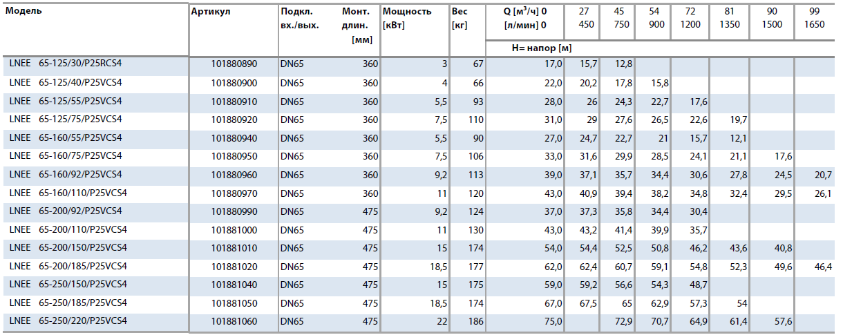 Современная конструкция и гидравлические характеристики, оптимизированные для использования совместно с преобразователем частоты, делают насосы серии e-LNEE лучшим выбором для использования в коммунальном секторе. Высокая эффективность: Новая высокоэффективная гидравлика со значением индекса эффективности MEI выше уровня европейской директивы ErP2015 и двигатели класса IE3 позволяют иметь низкие эксплуатационные затраты. Длительный срок эксплуатации и простое обслуживание: надежная конструкция и различные варианты исполнений, а также использование заменяемых колец износа позволяют продлить срок эксплуатации; насосы серии e-LNEE просто монтировать,удобная конструкция позволяет сократить время обслуживания.