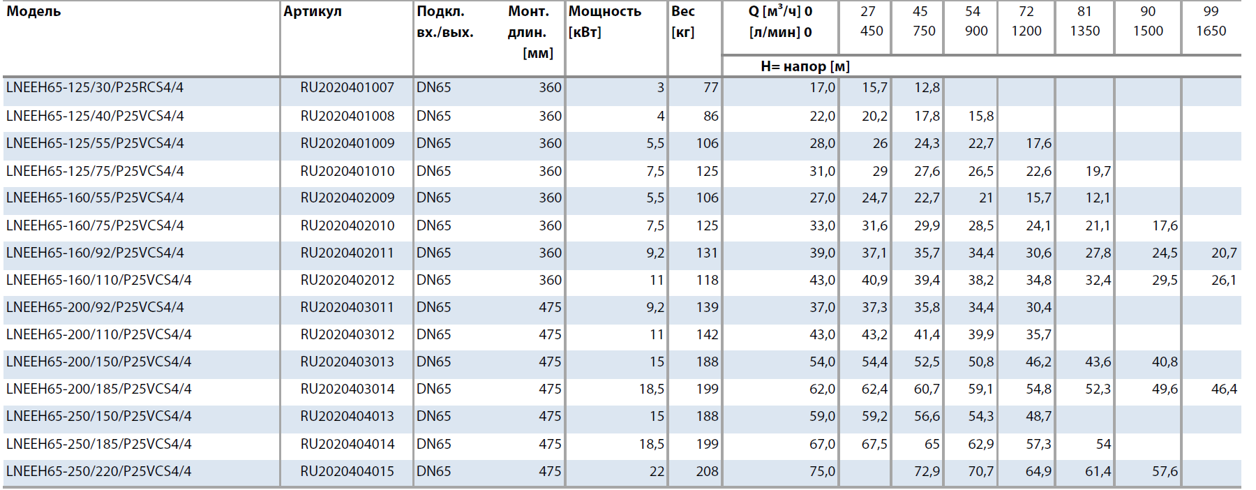 Насосы Lowara серии e-LNE представляют собой центробежные насосы с одним рабочим колесом и патрубками, расположенными в линию. Насосы серии e-LNE имеют конструкцию, позволяющую демонтировать двигатель и рабочее колесо без демонтажа корпуса из системы трубопроводов. На насосах серии e-LNEEH смонтирована интеллектуальная система регулирования скоростью Hydrovar. Области применения: Отопление, вентиляция, кондиционирование в ЖКХ.