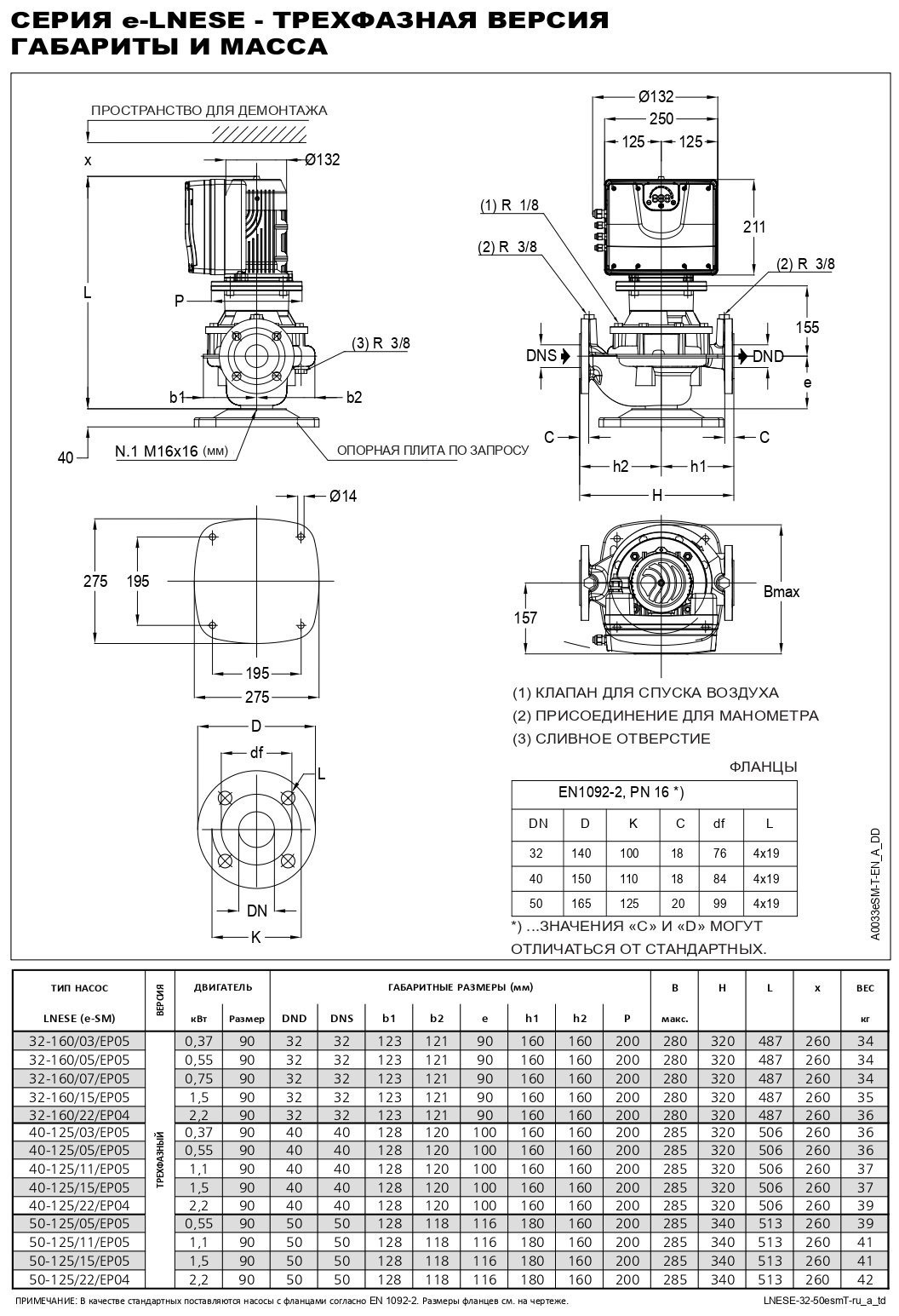 Циркуляционный насос Lowara LNES E 40-125/03/EP05CS4