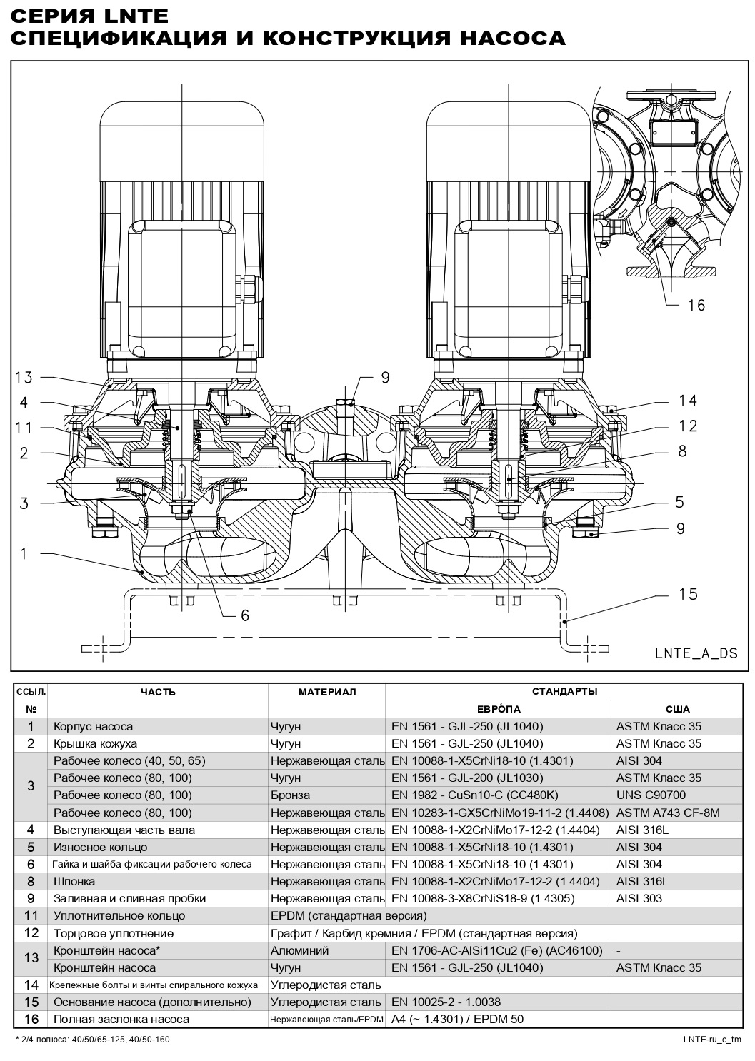 Циркуляционный насос Lowara LNTEH50-125/40/P25VCS4/4