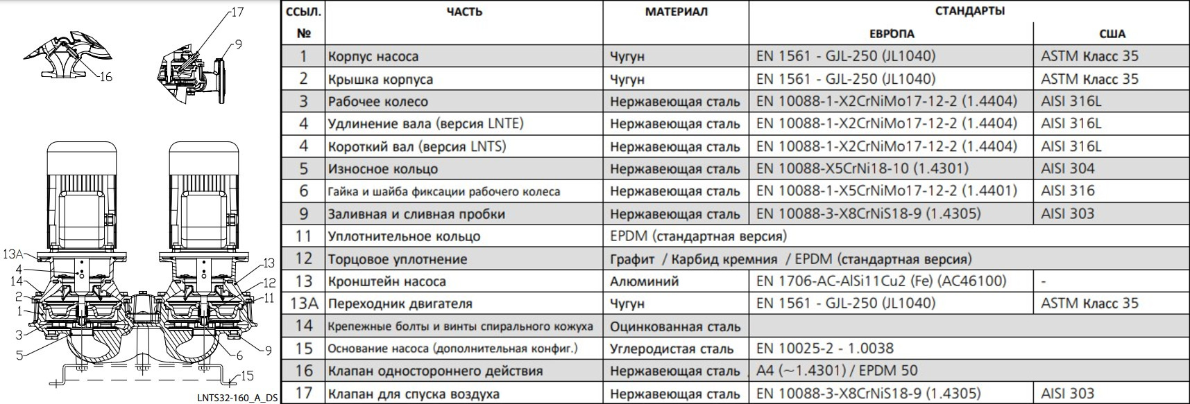 Насос Lowara серии LNTS 32-160/22/P25RCS4 представляет собой сдвоенный центробежный насос со всасывающим и напорным патрубками «ин-лайн» типа. Насосы оснащены закрытыми рабочими колесами, связанными автоматически переключающимся клапаном. Оба насоса могут работать по отдельности или параллельно. Насосы серии LNTS имеют «разъемную» конструкцию (рабочее колесо, переходную муфту, и двигатель можно извлечь, не отсоединяя корпус насоса от трубопровода). Сдвоенные насосы обеспечивают резервирование системы: один насос может работать, а второй оставаться резервным/обслуживаться. Прочная конструкция, разный размер подшипниковых опор и съемные компенсационные кольца из нержавеющей стали обеспечивают долгий срок службы. Серия e-LNT также спроектирована для удобства техобслуживания, все точки обслуживания имеют легкий доступ, что позволяет снизить время простоя.