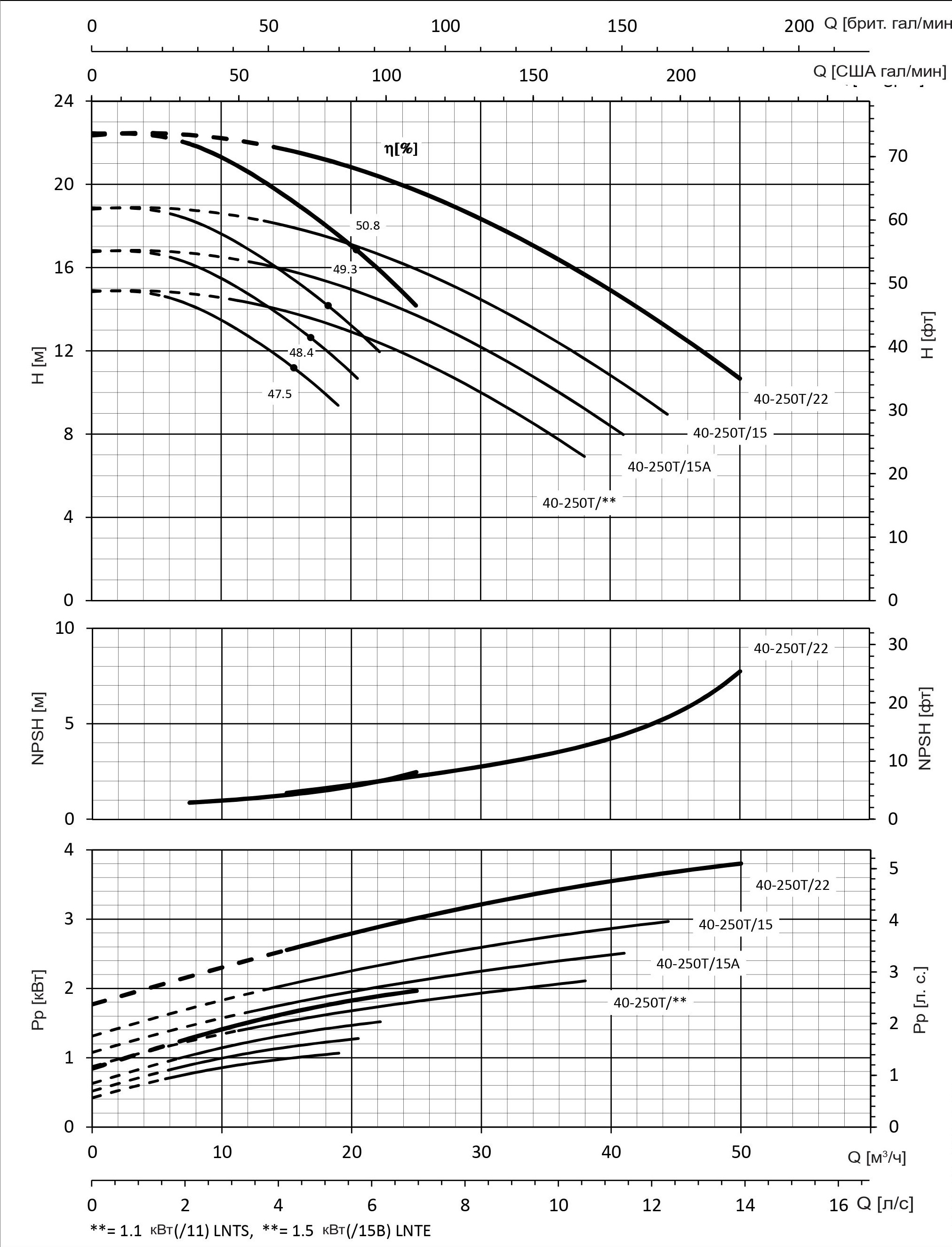 Насос Lowara серии LNTS 40-250/22/P45RCS4 представляет собой сдвоенный центробежный насос со всасывающим и напорным патрубками «ин-лайн» типа. Насосы оснащены закрытыми рабочими колесами, связанными автоматически переключающимся клапаном. Оба насоса могут работать по отдельности или параллельно. Насосы серии LNTS имеют «разъемную» конструкцию (рабочее колесо, переходную муфту, и двигатель можно извлечь, не отсоединяя корпус насоса от трубопровода). Сдвоенные насосы обеспечивают резервирование системы: один насос может работать, а второй оставаться резервным/обслуживаться. Прочная конструкция, разный размер подшипниковых опор и съемные компенсационные кольца из нержавеющей стали обеспечивают долгий срок службы. Серия e-LNT также спроектирована для удобства техобслуживания, все точки обслуживания имеют легкий доступ, что позволяет снизить время простоя.