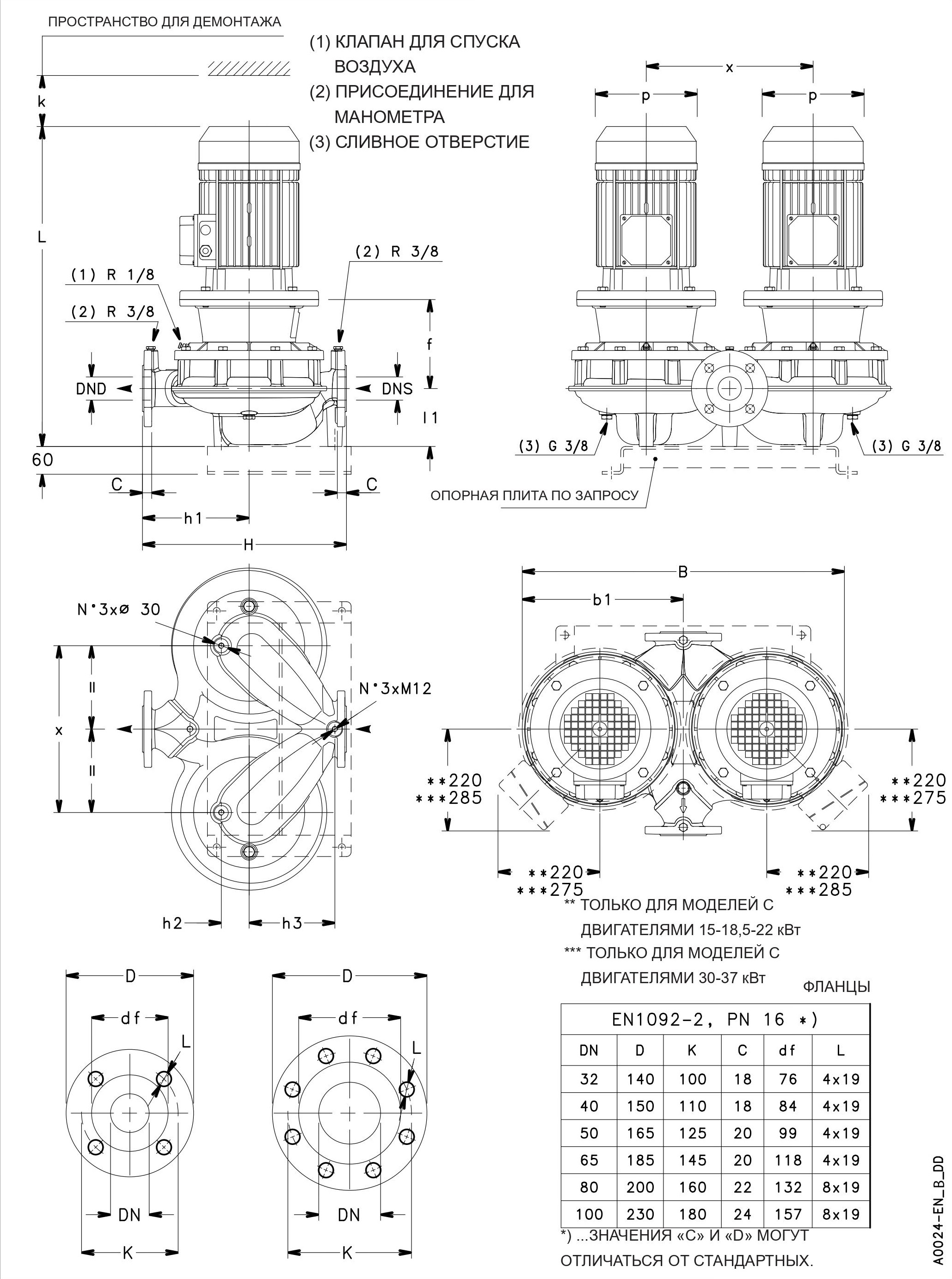 Насос Lowara серии LNTS 80-250/300/W25VCC4 представляет собой сдвоенный центробежный насос со всасывающим и напорным патрубками «ин-лайн» типа. Насосы оснащены закрытыми рабочими колесами, связанными автоматически переключающимся клапаном. Оба насоса могут работать по отдельности или параллельно. Насосы серии LNTS имеют «разъемную» конструкцию (рабочее колесо, переходную муфту, и двигатель можно извлечь, не отсоединяя корпус насоса от трубопровода). Сдвоенные насосы обеспечивают резервирование системы: один насос может работать, а второй оставаться резервным/обслуживаться. Прочная конструкция, разный размер подшипниковых опор и съемные компенсационные кольца из нержавеющей стали обеспечивают долгий срок службы. Серия e-LNT также спроектирована для удобства техобслуживания, все точки обслуживания имеют легкий доступ, что позволяет снизить время простоя.