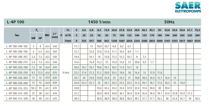 Циркуляционный насос SAER L-4P 100-250-269