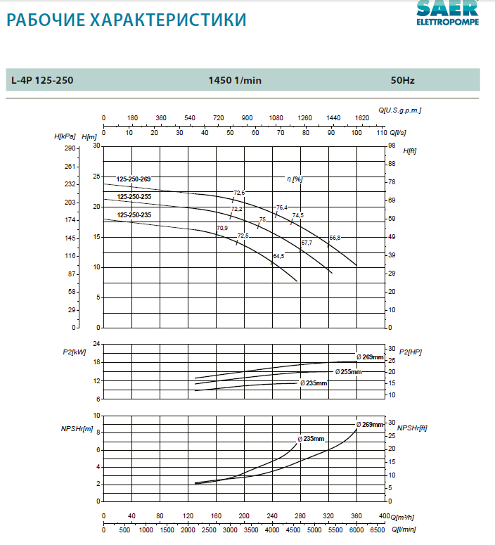 Циркуляционный насос SAER L-4P 125-250-255