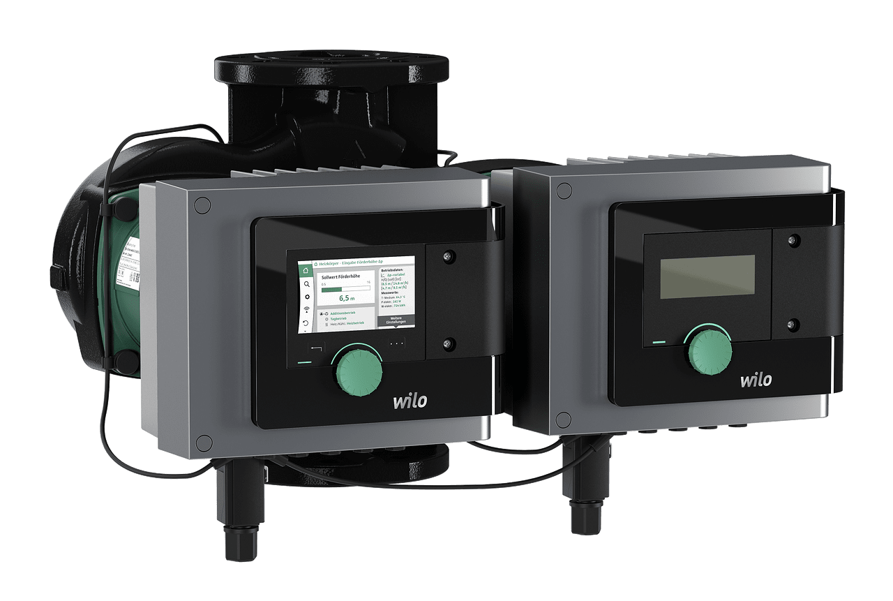 • Умный сдвоенный циркуляционный насос с мокрым ротором, электронно-коммутируемым двигателем и встроенной автоматической регулировкой мощности