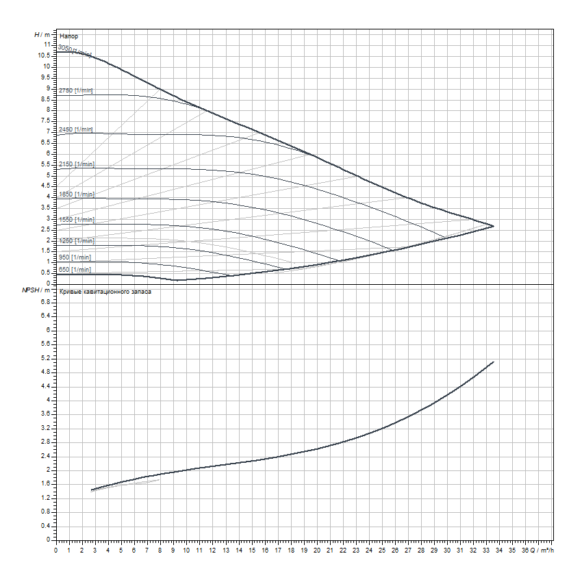 Мин. изб. давление на входе в насос 50 °C