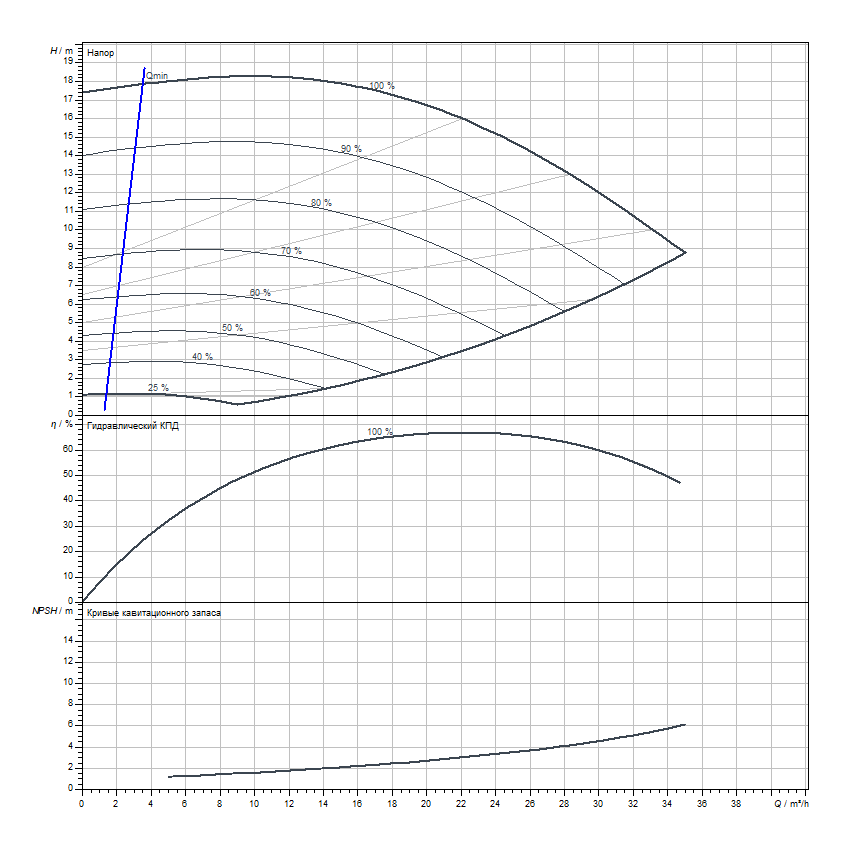Минимальная температура теплоносителя Минимальная температура перекачиваемой жидкости, при которой разрешается эксплуатировать насос. Превышение данного параметра может привести к поломке насоса.