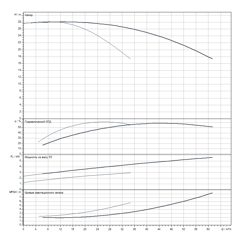 Линейный сдвоенный насос с двумя одноступенчатыми центробежными насосами с сухим ротором в общем корпусе с перекидным клапаном в напорном патрубке. Компактный насос линейного типа с непосредственно прифланцованным электродвигателем трехфазного тока и неразъемными валами или с промежуточными корпусами и муфтами жестко соединенных унифицированных электродвигателей (исполнение N).