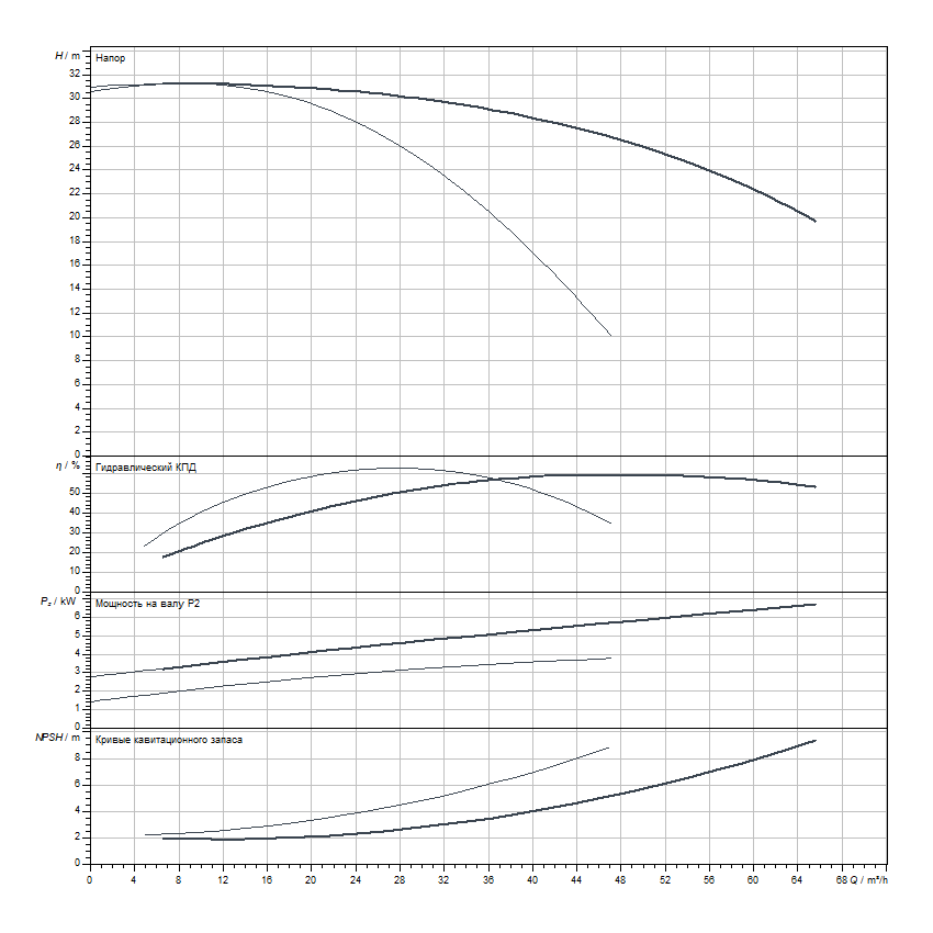 Линейный сдвоенный насос с двумя одноступенчатыми центробежными насосами с сухим ротором в общем корпусе с перекидным клапаном в напорном патрубке. Компактный насос линейного типа с непосредственно прифланцованным электродвигателем трехфазного тока и неразъемными валами или с промежуточными корпусами и муфтами жестко соединенных унифицированных электродвигателей (исполнение N).