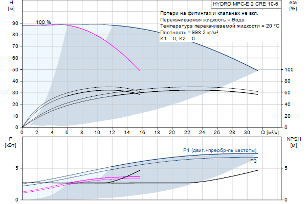 Начиная от 0,37 и до 22 кВт, все станции оснащены насосами CR, CRE, с двигателями со встроенным преобразователем частоты и высокоэффективными постоянными магнитами. Общий КПД этих электродвигателей лучше, чему у двигателей соответствующих стандарту IE4 по IEC60034-31, хотя данный стандарт применяется только для электродвигателей.