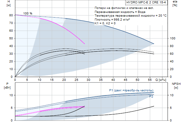 Начиная от 0,37 и до 22 кВт, все станции оснащены насосами CR, CRE, с двигателями со встроенным преобразователем частоты и высокоэффективными постоянными магнитами. Общий КПД этих электродвигателей лучше, чему у двигателей соответствующих стандарту IE4 по IEC60034-31, хотя данный стандарт применяется только для электродвигателей.